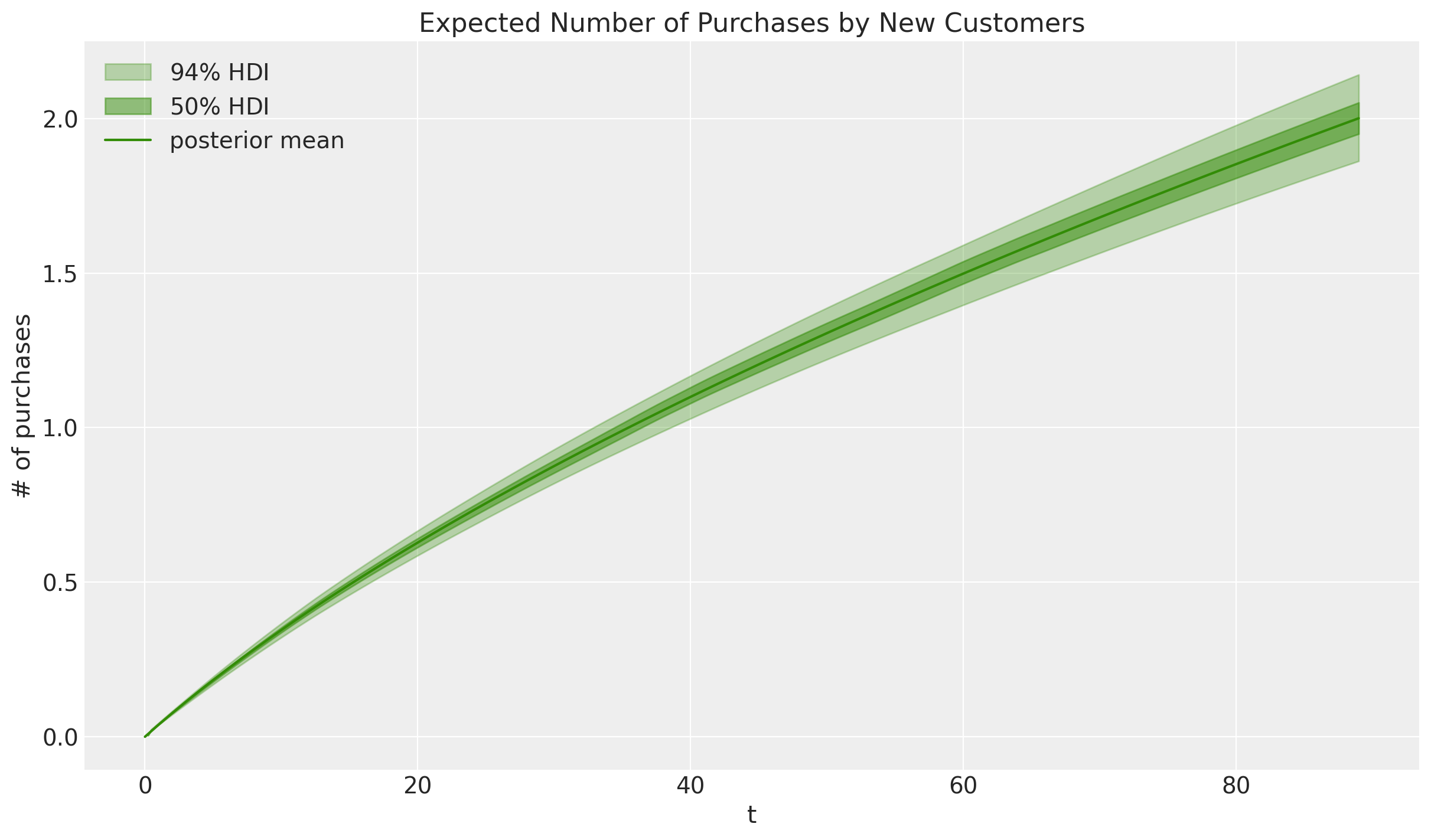 In this notebook we will use Bayesian inference to fit a Pareto/NBD model in PyMC-Marketing, and compare results with the frequentist lifetimes library (no longer maintained). We will also demonstrate the predictive functionality of this model, along with an example for time-invariant covariates.