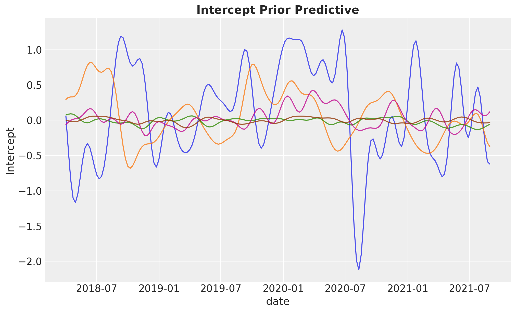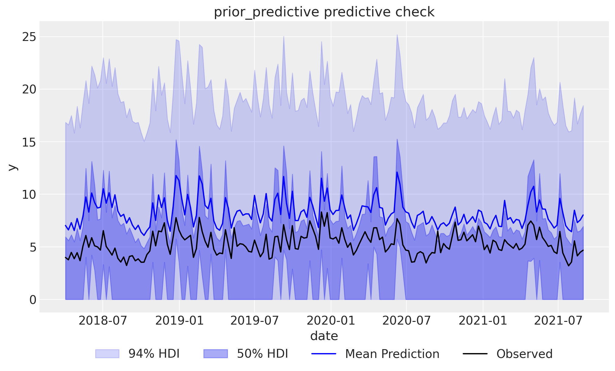 This guide provides an introduction to prior predictive modeling using PyMC (and PyMC-Marketing) and the Prior class from PyMC-Marketing.  We start by looking into a simpler example and then we will see how to apply to real case scenarios with marketing mix models in PyMC-Marketing.