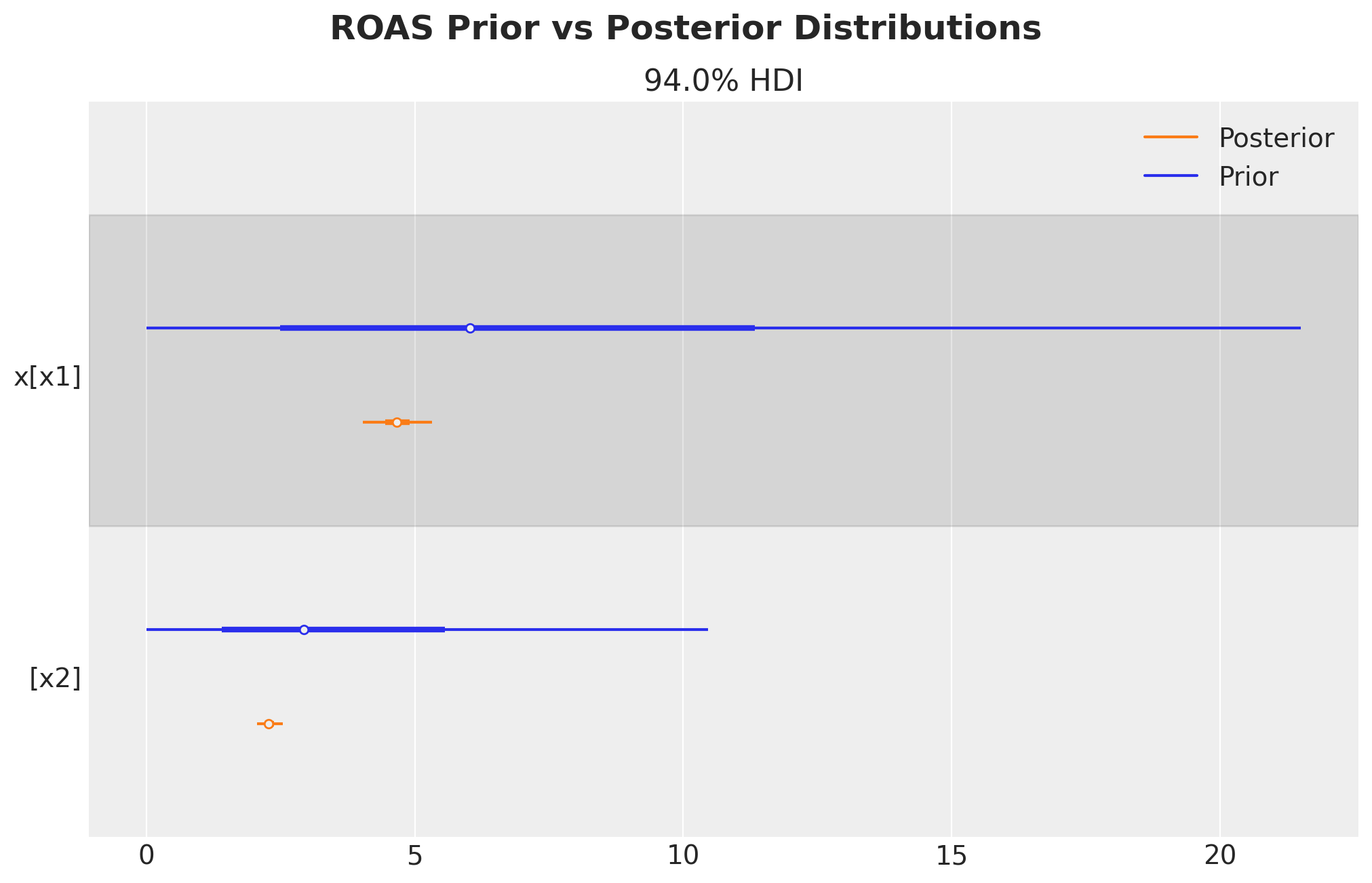 A final tip is to compare the prior and posterior ROAS distributions. This can help us to understand the impact of the data on the parameters.