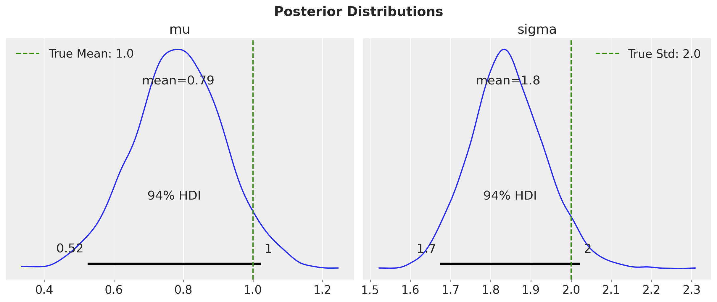 The posterior distribution combines our prior knowledge with the observed data to give us updated beliefs about the parameters. In practice, we often work with the unnormalized posterior: