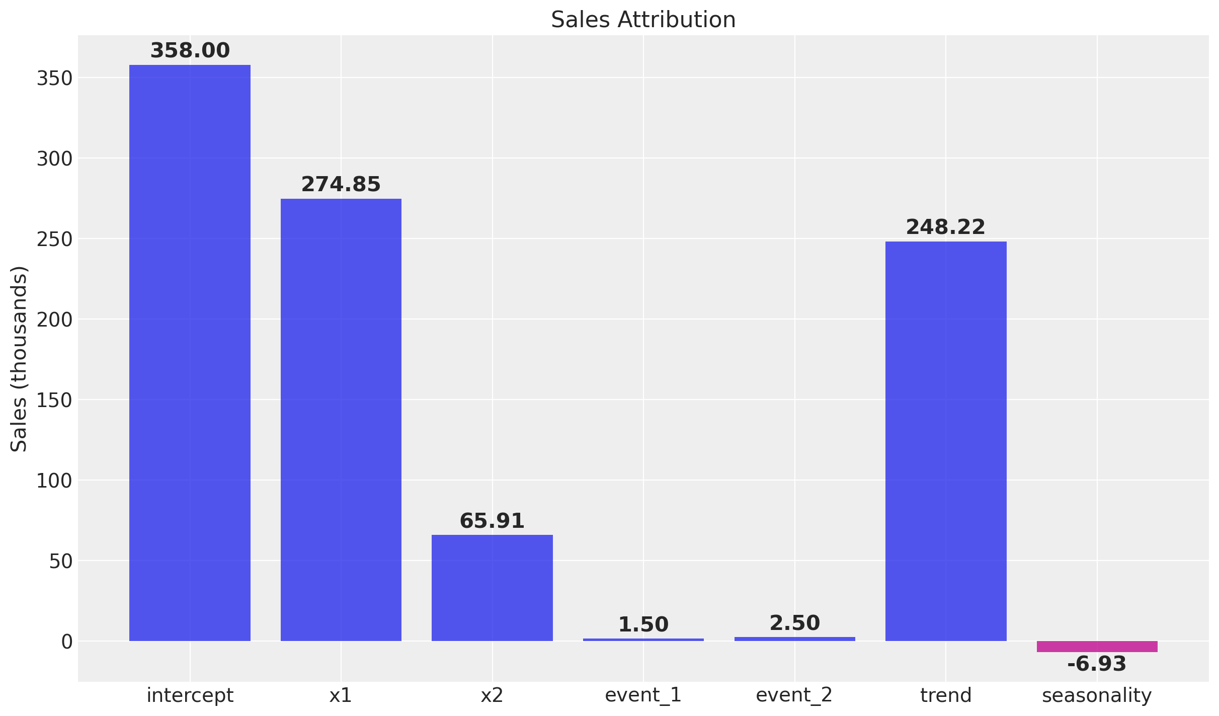 Budget Optimization: Allocate your marketing budget based on the parameters recover by the model, finding the spend distribution to maximizes the amount of contribution given a limited budget. See Budget Allocation with PyMC-Marketing.